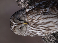 羽づくろいをするエゾフクロウ