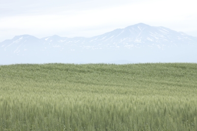 麦畑と美瑛の山