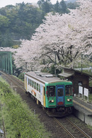 日当駅の桜と列車 樽見鉄道