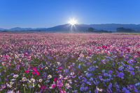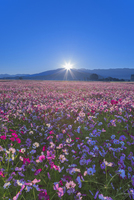 朝日昇るコスモス畑