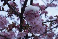 河津桜に雪