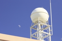 昇る半月と給水タンク(上弦の月、月齢7.7)