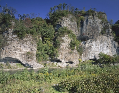 秋の山国川と青ノ洞門 名勝