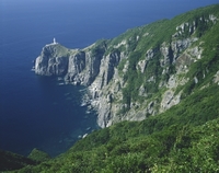 断崖と大瀬崎灯台。五島列島、福江島
