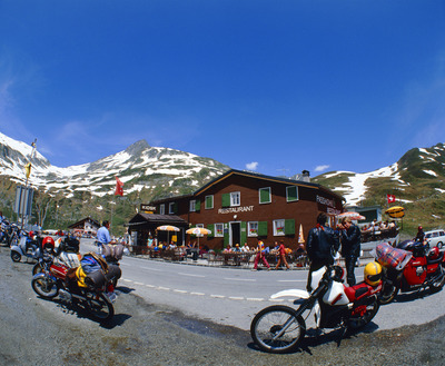 峠のレストラン,バイク,オーバーアルプ峠,Oberalppass, 2052m,グラウビュンデン州,Canton of Graubunden,オ?バ?・エンガディン,Oberengadin,エンガディン地方,Engiadina bassa