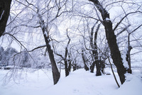 桧内川堤の桜並木と樹氷