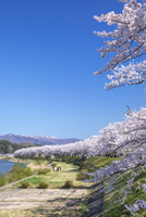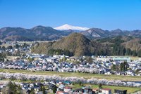 古城山公園より望む桧木内川堤の桜と鳥海山