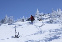 四阿山冬山 霧氷のある風景と登山者