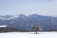 根子岳登山中に見たパインビークスキー場(中央)の冬山風景