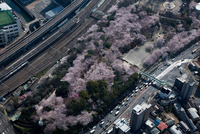満開の桜の飛鳥山公園と王子駅