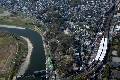 満開の桜の多摩川駅,多摩川,多摩川台公園と亀甲山古墳周辺