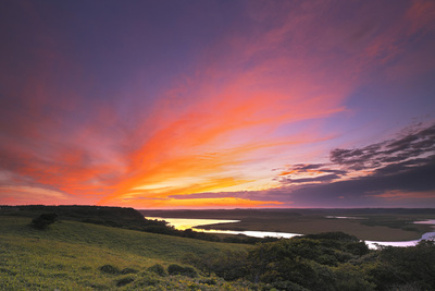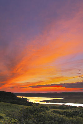霧多布湿原の日没と一番川