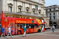 派手な塗装の市内観光バス