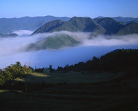 熊野参詣道・中辺路 高原から雲海の熊野の山並み 歴史の道百選・世界遺産