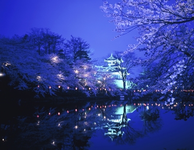桜咲く弘前城跡の夜桜 さくら名所百選