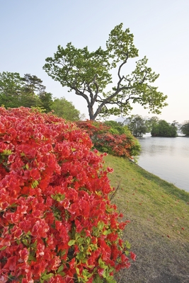 大沼のツツジと駒ヶ岳 朝