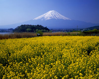 菜の花と富士山。河口湖大石にて