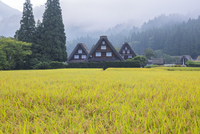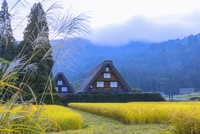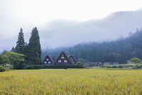 秋の白川郷の朝霧