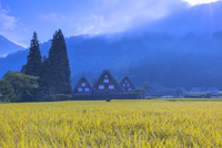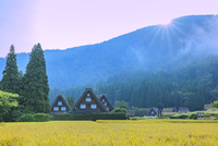 秋の白川郷の朝日