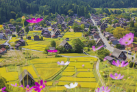 コスモス咲く白川郷