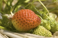 赤く色づき始めたイチゴ