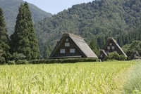 稲の実った田んぼと白川郷合掌造り