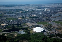 こまつドームより粟津駅と粟津の街並み