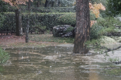 雨降る平林寺の紅葉