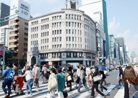定点撮影、晴れの日の東京銀座4丁目交差点
