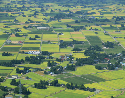 八乙女山から実りの稲田と散居住宅が広がる砺波平野