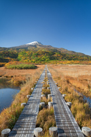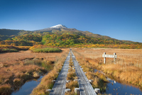秋の鳥海山と木道
