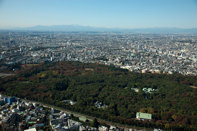 明治神宮、代々木公園付近より富士山