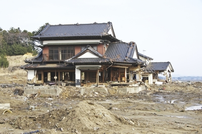 東日本大震災の津波で壊れた民家