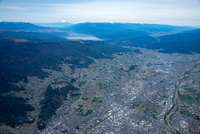 松本盆地(南松本駅,篠ノ井線地区より諏訪湖,富士山)