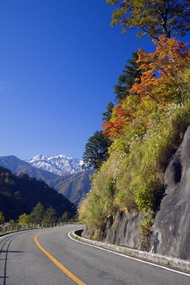 紅葉する林道