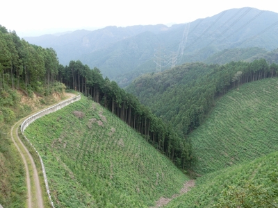 崖崩れで通行止めの林道