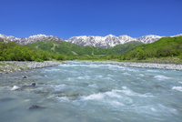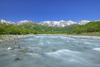 松川の流れと残雪の白馬三山