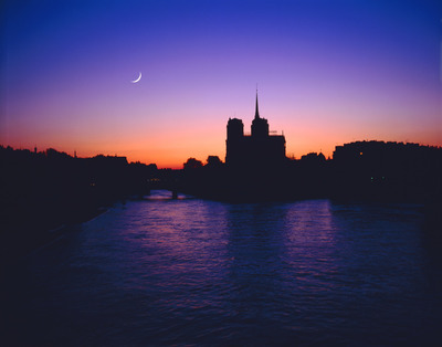 ノートルダム寺院と月