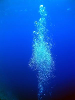 水中に立ち上る泡