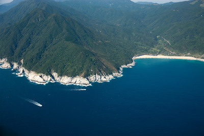 大隅海峡と大隅半島、岸良周辺の海岸線(リアス式海岸、海食洞 海岸段丘)