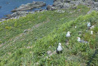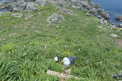 ウミネコ 集団繁殖地と群翔