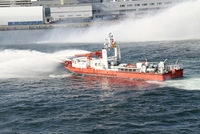 放水する放水船