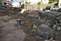液状化現象により陥没した道路