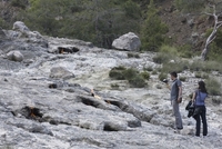 焚き火の炎で食事を保温する
