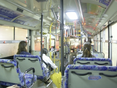 雨の夜のバスの車内
