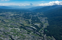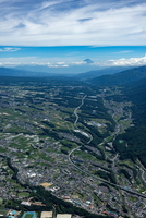 岡谷市街地,下諏訪より諏訪湖と富士山