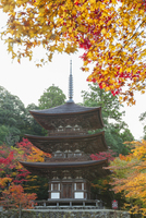 紅葉の西明寺の三重塔