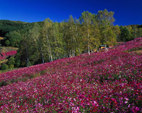 コスモスと白樺林