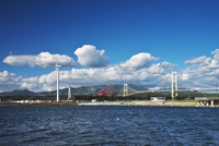 白鳥大橋と風力発電
