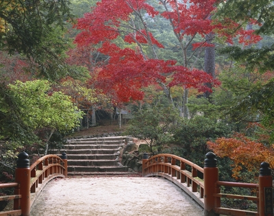 秋の宮島のもみじ谷